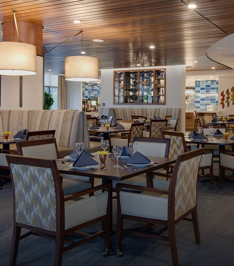 For a more relaxed ambiance, the Bistro serves as the social hub of our community. Open for breakfast and lunch, this stylish venue offers casual fare, fresh pastries, and coffee. It’s the perfect spot to grab a bite and catch up with neighbors.