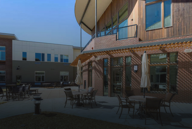 Patios and seating areas that bring together community, connection, and fresh air.